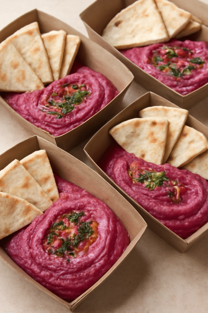 Color, textura y sabor. Acompañado de pan de pita crujiente